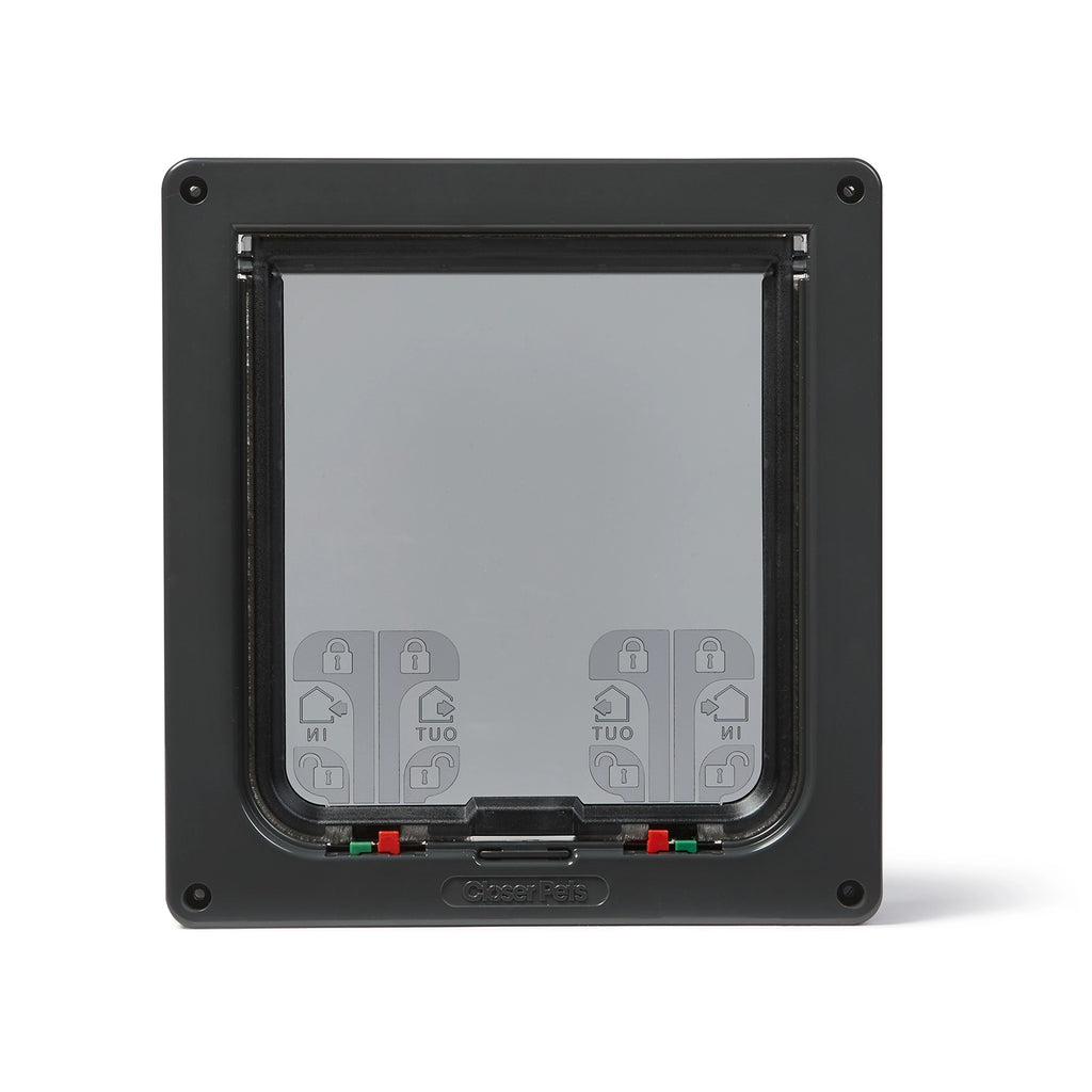 A secure four-way-locking mechanism gives the ability to let your cats in and out, in only, out only, or locked.