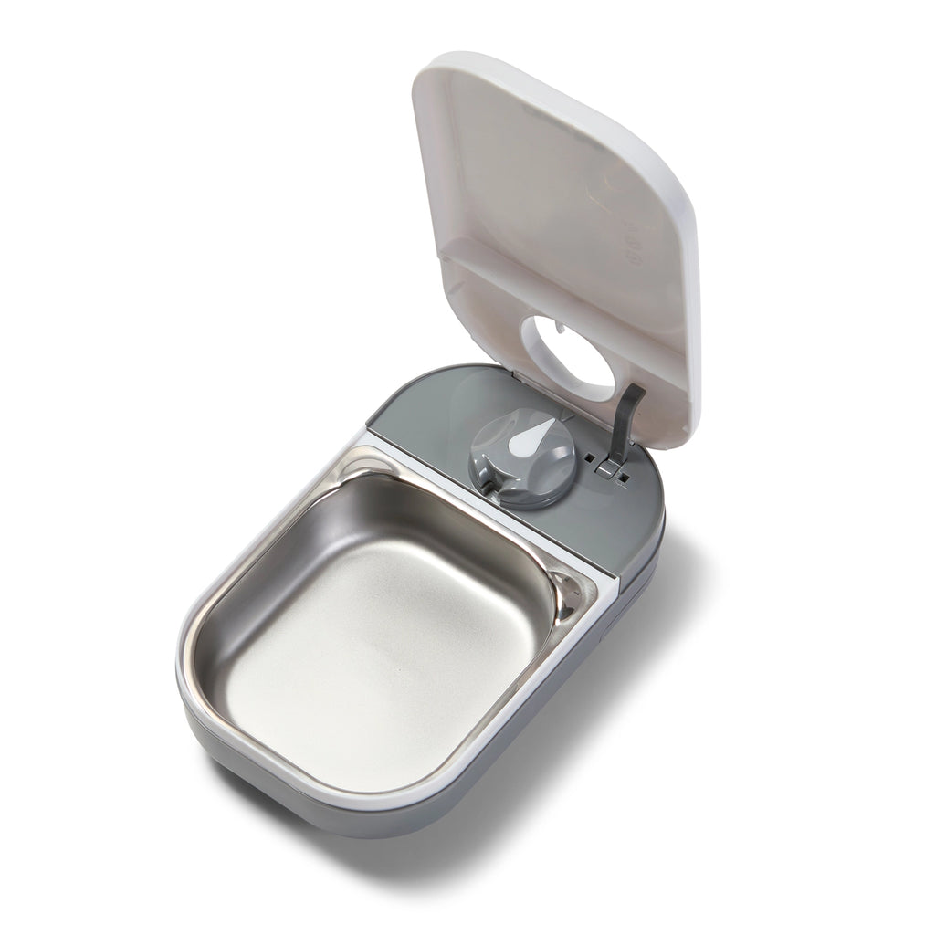 - One large stainless steel food bowl (does not use an ice pack) 123mm x 30mm x 137mm (4.75" x 1.25" x 5.5") holding 400g (14 oz) of wet food (or equivalent dry food).