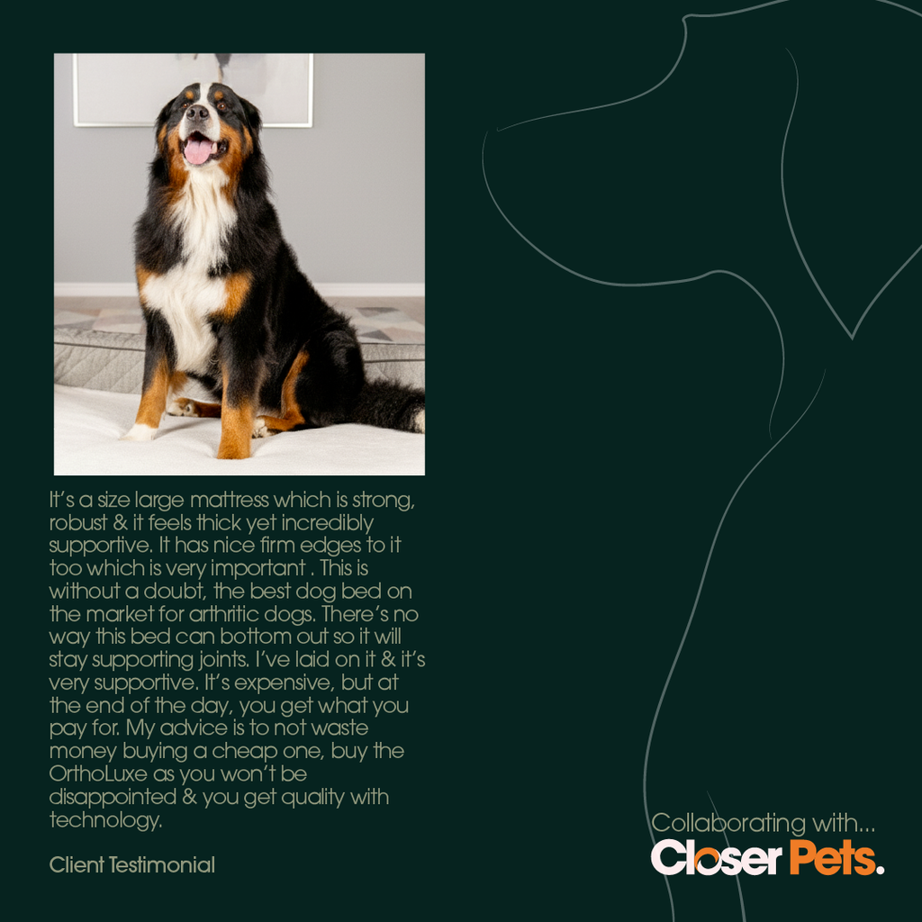 The OrthoLuxe Bed is meticulously crafted to deliver exceptional comfort and targeted joint relief for dogs, especially those who are navigating the challenges of arthritis.