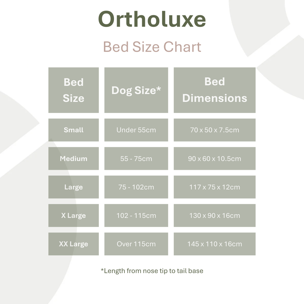 OrthoLuxe Bed Size Chart